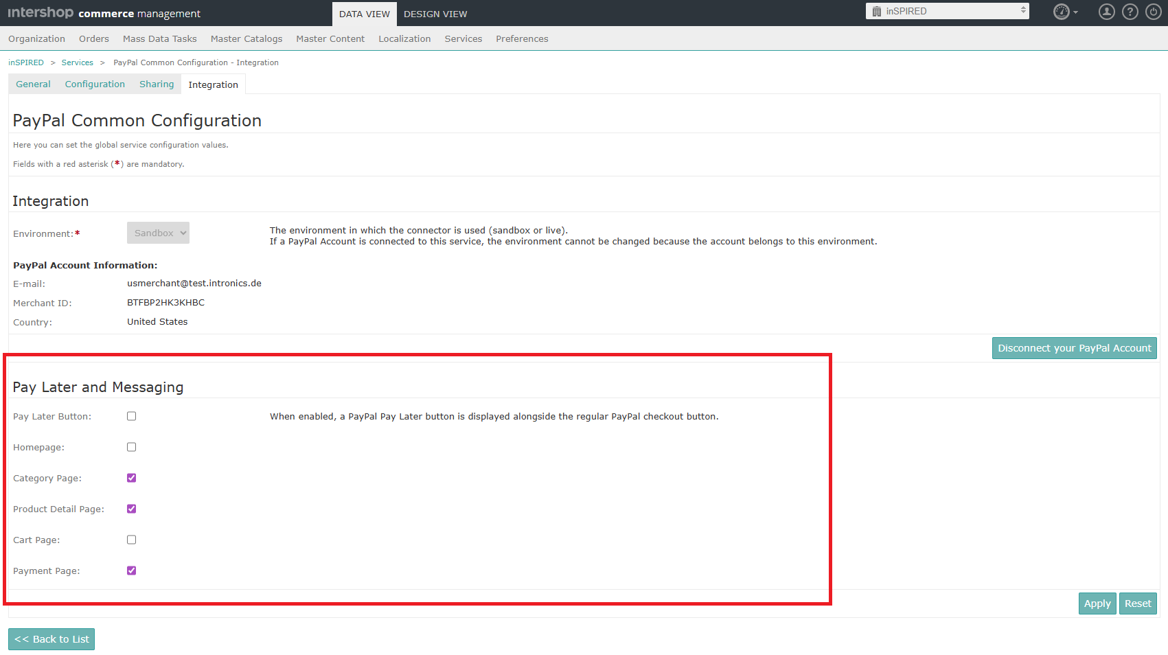 data-namespace attributes as cache keys to handle scripts with dynamic URLs (e.g., PayPal SDK URLs that change with locale/currency)type, integrity, crossorigin, and custom data attributesObservable<ScriptType> for tracking load statusThe visibility of Pay Later messages or Pay Later buttons is controlled by the settings of the PayPal Common Configuration Service in Intershop Commerce Management.